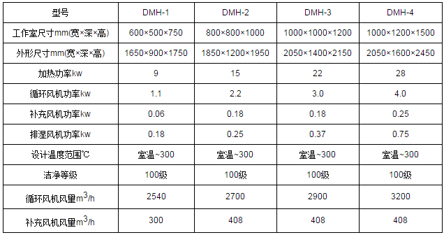 凈化級別:萬級外型尺寸如下表: