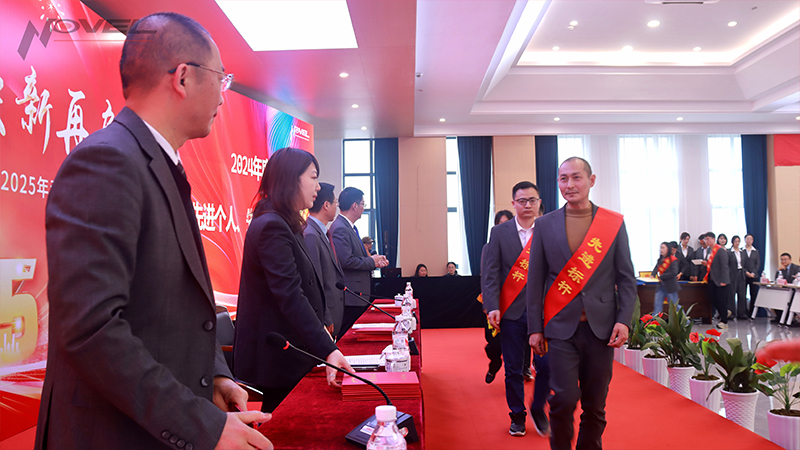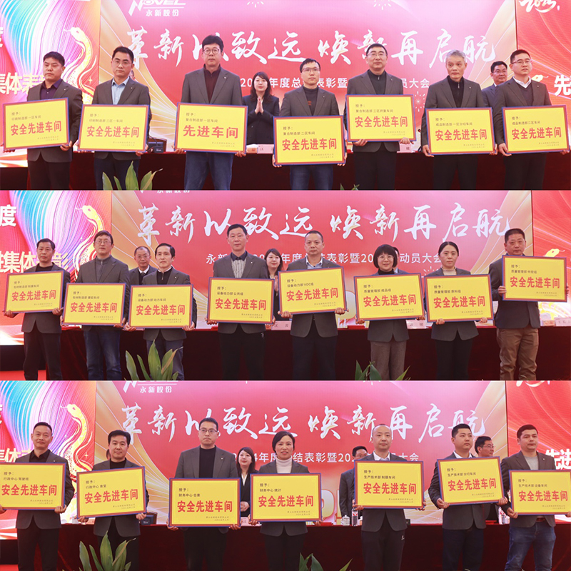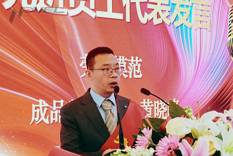 王長春副總經理宣讀《2024年度先進個人、先進集體表彰決定》。各位先進代表在平凡的工作崗位上,堅持高標準嚴要求,兢兢業業完成本職工作,用智慧和汗水奮勇打拼,為永新發展匯聚出磅礴力量。勞動模范、成品制造部黃曉峰代表受表彰的先進員工發言。
